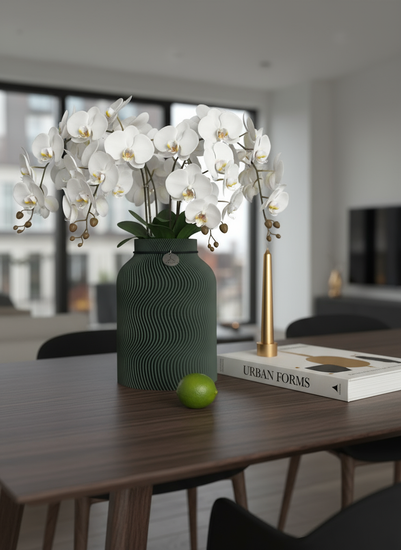 Setzen Sie ein stilvolles Statement mit der Adyloo Vase – einem modernen Designobjekt, das Ästhetik und Umweltbewusstsein vereint.